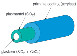 Een glasvezel is opgebouwd uit glas met twee verschillende chemische samenstelling. Het binnenste glasdeel wordt glaskern ('core') en het buitenste glasdeel glasmantel ('cladding') genoemd. De glasmantel zorgt er voor dat het licht in de glaskern blijft. Alleen als de vezel sterk gebogen wordt zal het licht door de glasmantel naar buiten treden.