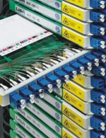 ptische distributie frame (ODF) afgewerkt op 'Patchlades'. In de patchlades bevinden zich glasvezel 'Picktales'. Picktales bestaan uit een optische connector met daaraan een stuk glasvezel van ongeveer een tot twee meter. De binnenkomende glasvezelkabel wordt in deze patchlades gelast op de picktales. In een ODF kunnen, afhankelijk van het type connector, zo'n 1200 glasvezels worden afgewerkt op de picktales. Op de patchlade connectoren kan vervolgens de optische apparatuur zoals zenders, ontvangers, multipexers en verdelers worden aangesloten met 'Patchkabels'.