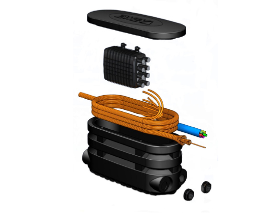 vezels bestaande uit 12 tubes zijn dus acht cassettes nodig. Er kunnen meestal meerdere gelaste glasvezelkabels in een lasbox worden ondergebracht. De lascassettes in de lasbox worden vuil en vocht afgesloten met de lasboxkap. De ingevoede kabels worden met wartels opgesloten in de voet van de lasbox. Vervolgens worden de lasboxen opgeborgen in de 'manhole'. De manhol wordt vervolgens met deksel afgesloten en afgedekt met zand.