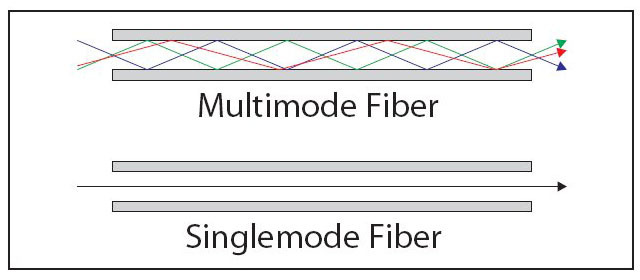 Door de dikkere glaskern van de multtmode glasvezel zullen de lichtfrequenties vaker reflecteren en daardoor zullen er stoorproducten onstaan waardoor de kwaliteit van de optische draaggolf afneemt. Daarom worden multimode glasvezel ingezet voor optisch datatransport over korte afstanden.