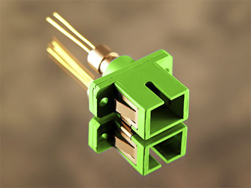 Het variërende licht, verzonden door de optische zender, wordt door de fotodiode in een optische ontvanger omgezet in een variërende spanning. In de foto hiernaast een voorbeeld van een praktische fotodiodes. De lichtdraaggolf wordt gedemoduleerd waardoor de oorspronkelijke draaggolven voor radio, televisie en internet weer beschikbaar komen. Een optische ontvanger is, in tegenstelling tot een optische zender, breedbandig. Dat betekent dat Lambda's van 1200 nm tot 1650 nm kunnen worden ontvangen en gedemoduleerd.