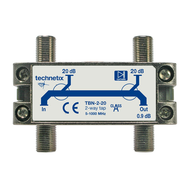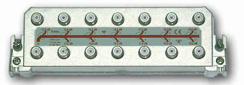 Hieronder een speciaal aftakelement(multitap) die gebruikt wordt voor het verdelen van RF-signalen, vanaf de eindversterker, via een coax kabel naar de huisaansluitingen. De demping (verlies) waarden van onderstaand type multitap lopen van 12 dB tot 19 dB. De verschillende waarden zijn nodig omdat coaxkabels van verschillende lengtes nodig zijn om de huizen te kunnen aansluiten. Op een eindversterker locatie kunnen meerdere multitaps zijn geplaatst. Om dit te kunnen realiseren worden verdelers toegepast.