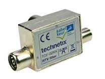 Filters worden gebruikt in situaties waar RF-signalen in een bepaald frequentiegebied moet worden onderdrukt of worden doorgelaten. We kunnen onderscheid maken in laagdoorlaat-, hoogdoorlaat- en band- filters. Onderstaand filter bestaat uit een bandfilter voor het alleen doorlaten van de FM radio bandbreedte op de R-uitgang. Op de andere uitgang zijn de TV frequenties beschikbaar. Het filter is nodig om ervoor te zorgen dat de radio ontvangst niet wordt verstoord door de aangeboden TV en Internet signalen. Het filter is en wordt veel in huisinstallatie toegepast